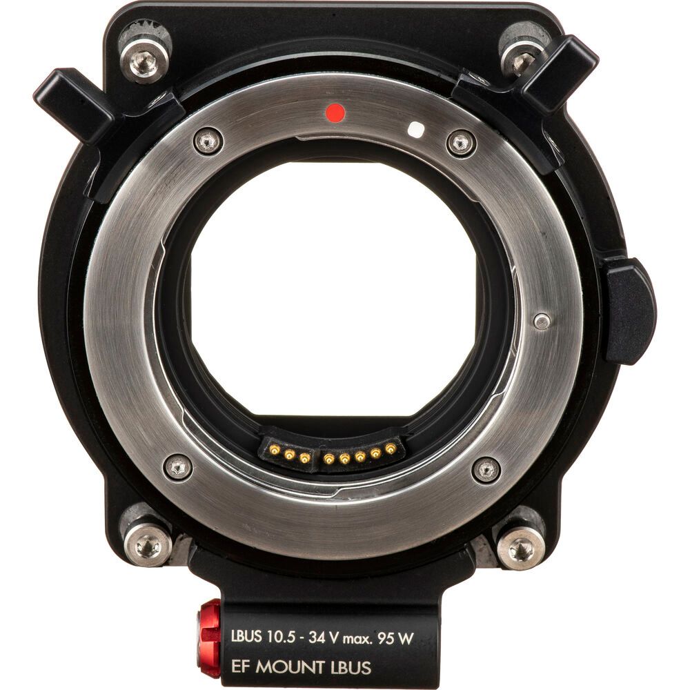 The ARRI EF Mount is an EF lens mount with an LBUS connector and reduced internal reflection properties that ensure the full contrast of the image from the lens reaches the sensor. This EF mount (LBUS) has a wide light baffle that illuminates both Super35 and large-format sensor areas. It allows control of the electronic iris in many EF lenses through the camera menu and ARRI ECS devices. It also allows the use of the electronic image stabilization found in some EF lenses.