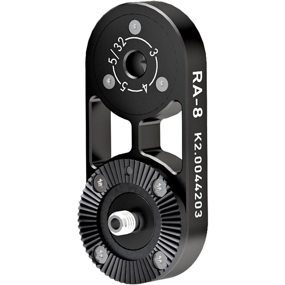 This ARRI RA-8 Rosette Adapter attaches an OCU-1 Operator Control Unit to your ZMU-4 Zoom Control Unit. One side of the adapter is a rosette that secures to the ZMU-4, and the other side is a variable mounting hole that can be adjusted from 5/32, M3, M4, or M5 to mount your OCU-1. Once combined, these two units can facilitate multi-axis FIZ control over your cinema camera.