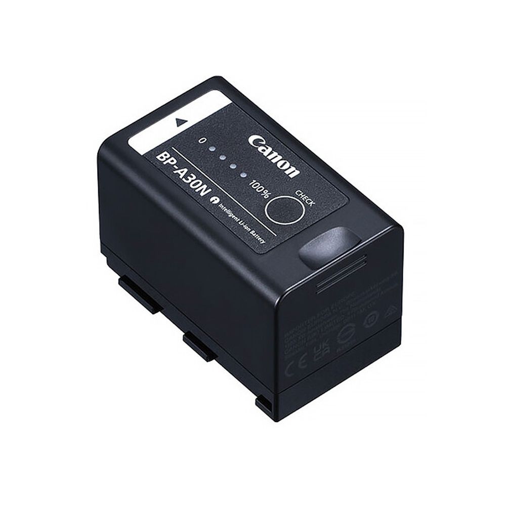 he Canon BP-A30N Battery Pack is a standard-capacity power option for select Canon cameras. This updated "N" series pack features additional power output that will enable select features of newer Canon cinema cameras, such as the Multi-Accessory Shoe of the EOS C400. The battery incorporates a small push button that activates the remaining power indicators on the battery, allowing you to quickly determine its approximate power level without having to attach it to a camera. It also comes with a contact cover to keep it protected when not in use.