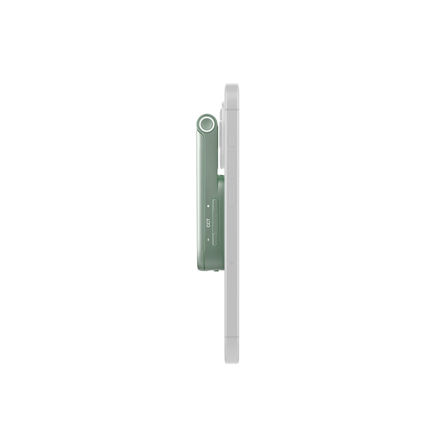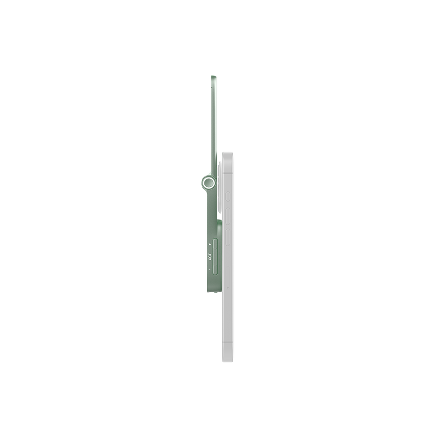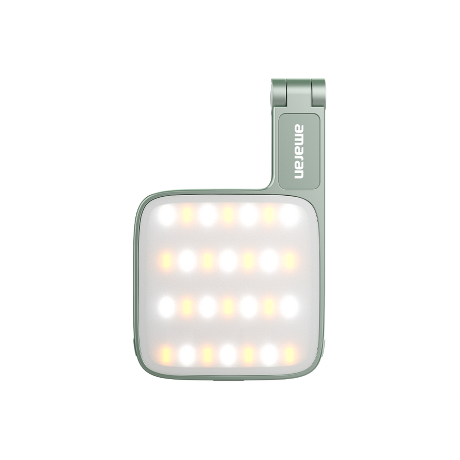 The compact and convenient GO in green from amaran is a mini folding LED light for use with your smartphone in a MagSafe case. It provides adjustable colour temperature and brightness to help create your desired look and is easily controlled using the free app for iOS or Android. It has a portable form factor that fits in your pocket. The Go is an inexpensive way to improve the quality of your content. It offers fast and reliable attachment to MagSafe-enabled phones, and its versatile flip design provides seamlessly switching between front and rear camera setups. It has a built-in mirror and makeup light for quick touch-ups and a compact folding design. The color scheme matches popular phone styles.