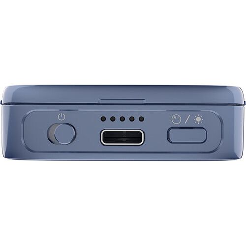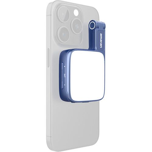 The compact and convenient GO in blue from amaran is a mini folding LED light for use with your smartphone in a MagSafe case. It provides adjustable colour temperature and brightness to help create your desired look and is easily controlled using the free app for iOS or Android. It has a portable form factor that fits in your pocket. The Go is an inexpensive way to improve the quality of your content. It offers fast and reliable attachment to MagSafe-enabled phones, and its versatile flip design provides seamlessly switching between front and rear camera setups. It has a built-in mirror and makeup light for quick touch-ups and a compact folding design. The color scheme matches popular phone styles.