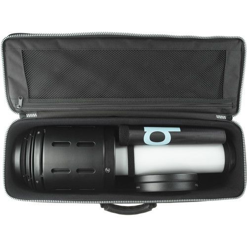 With coverage and functionality to match its unique shape, the Litepipe P for Broncolor Strobes from Broncolor is a great solution for tight locations and single light shooting in architectural, portrait, and fashion photography. The 49" cylinder has a diameter of 6.7", which is closed at the end to trap the strobe's output, bouncing it around inside the modifier to provide a soft 360-degree beam spread through its translucent surface. With a very clever design decision, Broncolor has provided two 10.6 x 7.5" counter-reflectors to block off specific sections of the light-shaper to narrow its beam spread for selective lighting. The Litepipe P is compatible with Pulso G, Unilite, Litos, MobiLED lamp heads, and the Siros line of monolights. A case is provided for storage and transport.