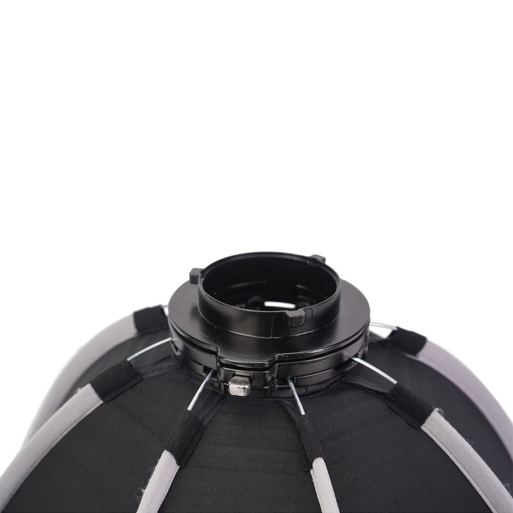 The eight-sided Light Dome 40 with Grid for STORM 80c from Aputure transforms your STORM 80c LED monolight's output into an ultrasoft area light, bathing your subject in diffused light. It has a 40cm diameter and is quickly attached using its mini-Bowens ProLock mount. It comes with a carrying bag, a detachable control grid, and one-stop and two-stop diffusers that enable you to fine-tune intensity and light quality.