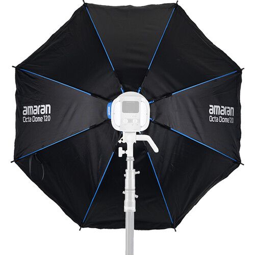 The amaran Octa Dome 120 softbox is a fast, efficient lighting tool designed for photographers and content creators who need a natural-looking light source with minimal setup time. Its large octagonal shape closely mimics natural sunlight, producing a smooth, evenly diffused glow that enhances skin tones and textures while creating soft, rounded catchlights in the eyes. Built with a one-snap setup mechanism, it expands instantly with a simple pull of the speed ring handle, eliminating the hassle of complex assembly and breakdown. The slim, collapsible design makes it easy to store and transport, making it ideal for both studio and on-location shoots where space and time are limited.