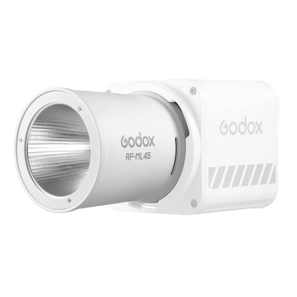 The Godox RF-ML45 reflector produces a beam angle of 45°. The RF-ML45 focuses light more efficiently than a standard reflector, maximising brightness and reducing light falloff.