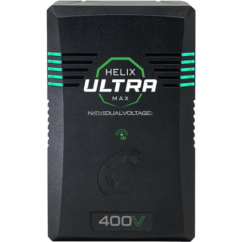 Power your cinema or broadcast camera with the Helix Max Ultra Dual-Voltage Smart Battery from Core SWX. Boasting V-Mount capacity, the powerful V-mount battery features a sturdy and highly durable polycarbonate shell, which makes the battery ideal for high-powered cinema and broadcast applications. An ergonomic, side-mounted backlit LCD and wraparound LED indicators provide essential status data during operation, while real-time diagnostics, power performance data, and battery health insights are made possible when using an optional mobile app supported by the unit's Voltbridge iD technology.
