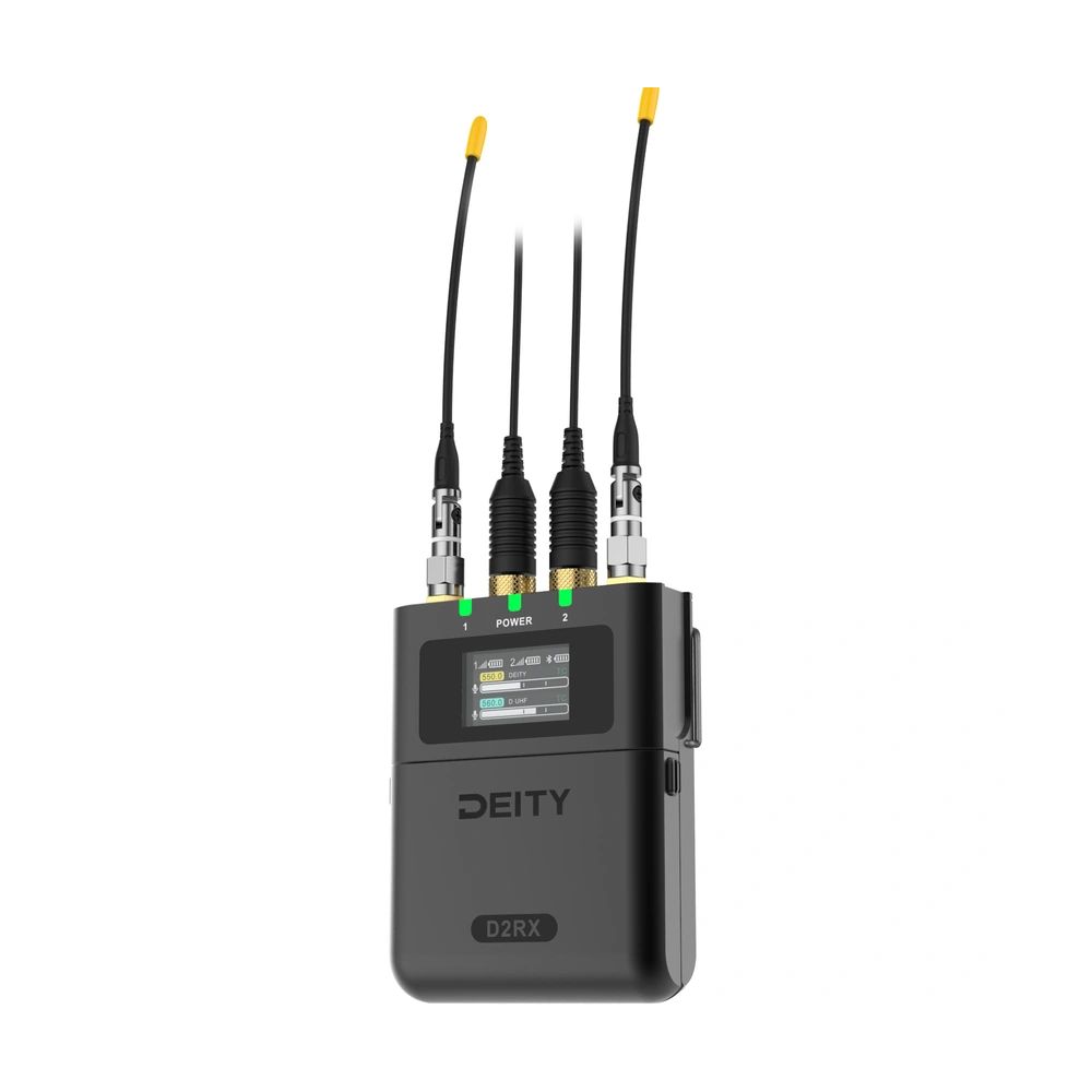 The Deity Microphones Theos D2RX Wireless Microphone Receiver allows for remote control functionality through the Sidus Audio app. The app allows you to run frequency scanning, coordination, change output modes, and more. This feature eliminates the need to physically handle the device, making it much more convenient when working with multiple units on set. You can pair up to 20 devices to a single phone.