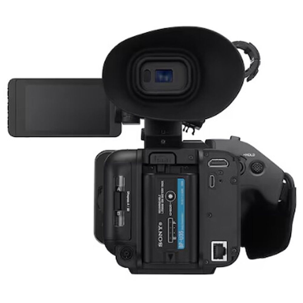 This camcorder's interface includes HDMI, USB-A, USB-C, LAN, REMOTE, and additional connectors.