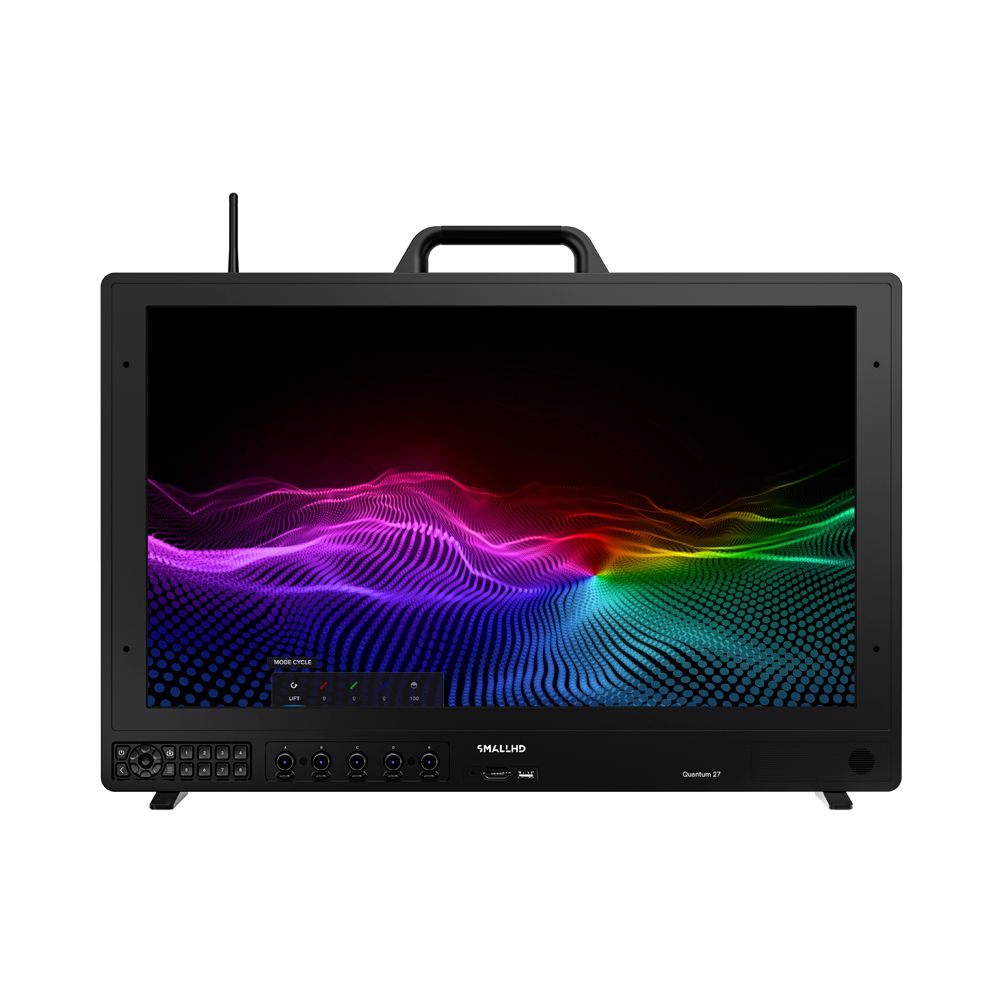 The SmallHD Quantum 27 is a 27-inch 4K production reference monitor featuring a Quantum Dot OLED display. It offers a peak brightness of 1000 nits, a 1,500,000:1 contrast ratio, and a wide color gamut, all within a lightweight and easily riggable chassis. The monitor is designed for both on-set and post-production workflows, providing a balance of high-quality HDR performance and portability.