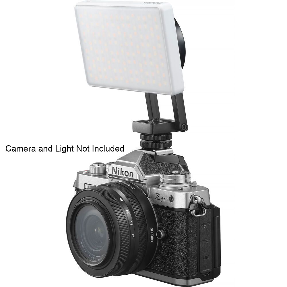 Powerful dual-sided N52-grade magnets in the Magnetic Bracket for MA5R from Godox let you securely mount Godox MA5R, magnetically compatible smartphone, or any other device or accessory with the included magnetic ring. The bracket's base can be mounted on a tripod or directly to a phone cage or camera via cold shoe. The pivoting bracket lets you tilt your magnetically attached device to the perfect position. It's an ideal solution for illuminating your subject with an LED light, filming social media-friendly content on a phone as you shoot with your camera, or pairing it with a tripod to create a vlogging station.