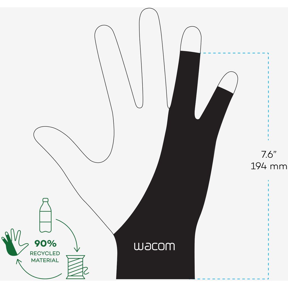 Designed with eco-friendly recycled materials, the Wacom Drawing Glove allows you to draw with the freedom of knowing you are helping the world we live in. 90% Recycled Polyester and Spandex offer breathability, stretch and durability for a comfortable fit. Suitable on either right or left hand.
