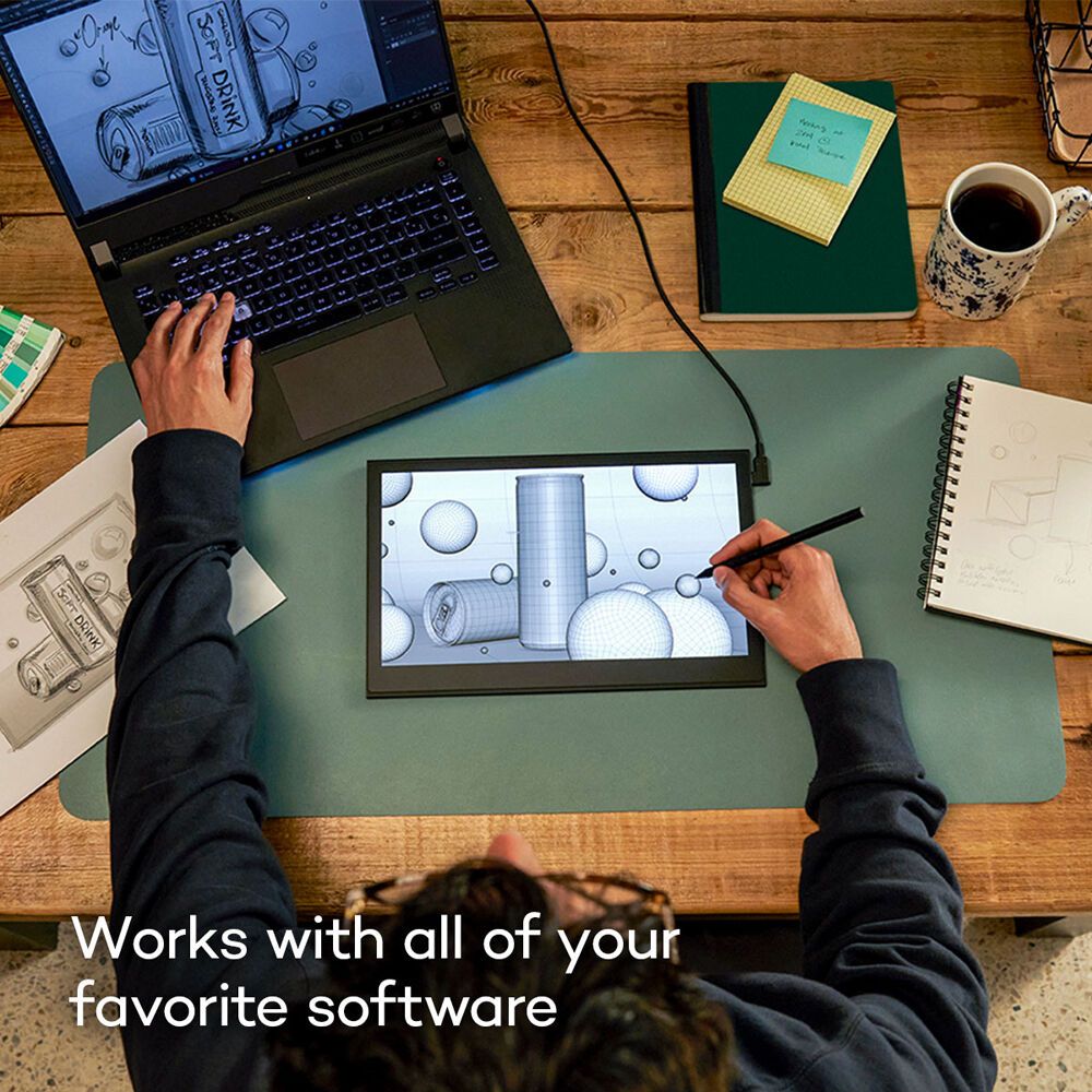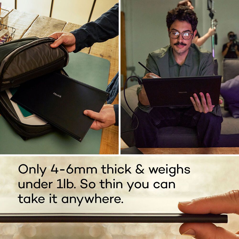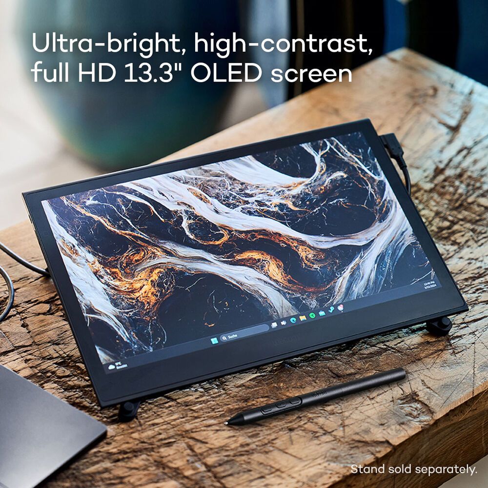 Featuring an exceptionally thin and lightweight design, the Wacom Movink 13 Creative Pen and Touch Display allows you to draw illustrations and make detailed photo edits from almost anywhere. The anti-glare Full HD OLED display has an 294 x 165 mm active area and delivers accurate 10-bit colors with 100% DCI-P3 and 95% Adobe RGB coverage. Touchscreen and 2-button ExpressKey controls help to streamline your creative workflow.