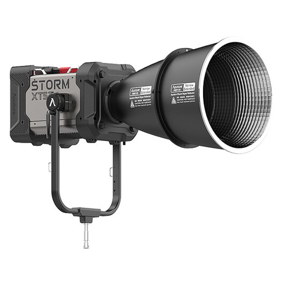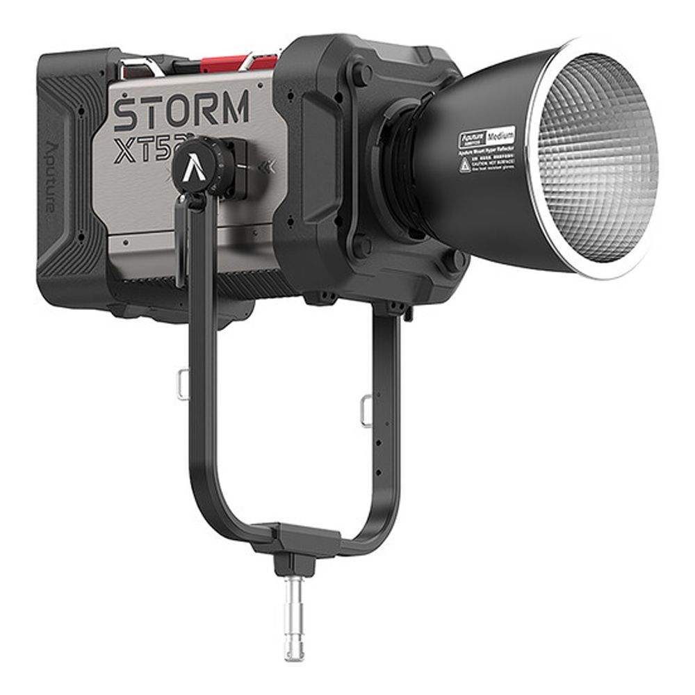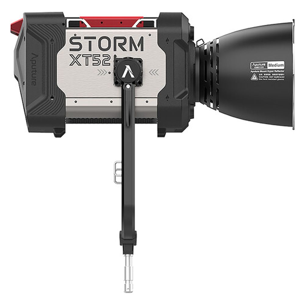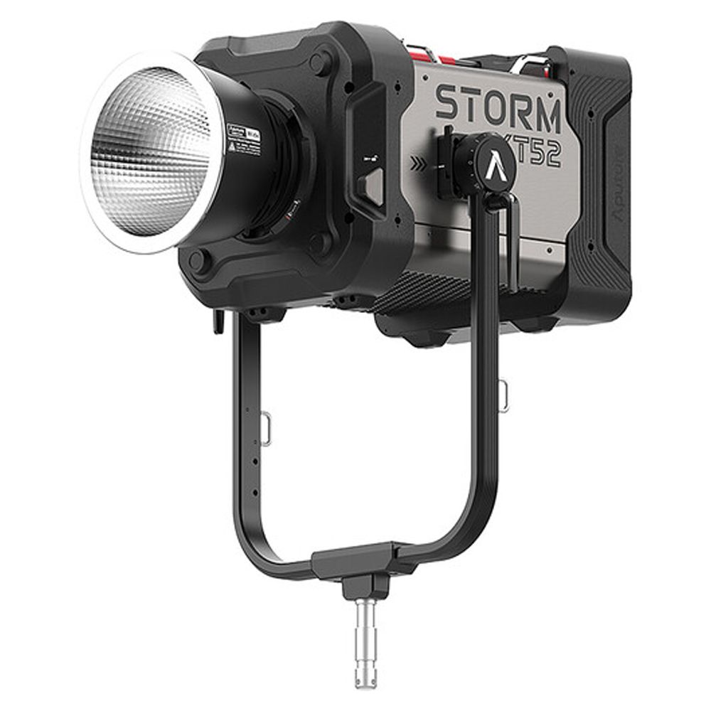 Designed for large-scale film and television productions, the STORM XT52 Point-Source Full-White LED Monolight from Aputure fixture offers 5200W of high-output white CCT from 2500 to 10,000K. It features a BLAIR chipset for exceptional accuracy, advanced connectivity options, and a rugged IP65 dust- and weather-resistant construction that withstands demanding capture environments. Its electronic mount is compatible with Aputure’s innovative electronic modifiers that provide enhanced optimization and motorized control. This XT52 fixture version comes with a bare ends cable.