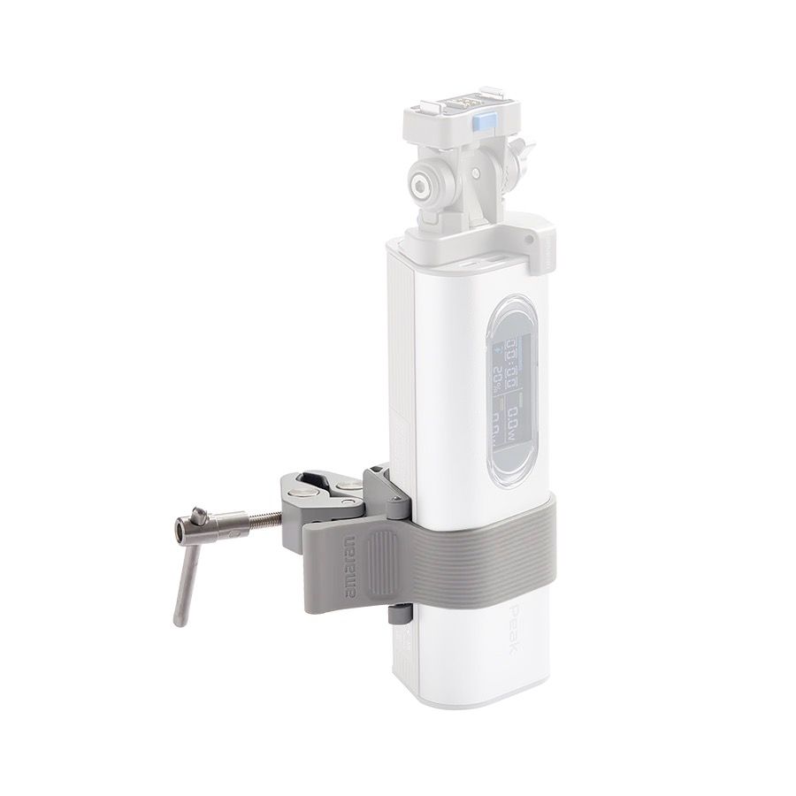 - Clamp accessory for mounting the amaran Peak battery to light stands, tripods, and other surfaces