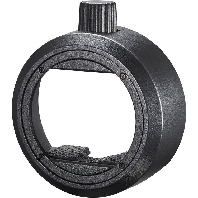 This SR-2 Round Head Accessories Adapter from Godox mounts accessories to flash heads and is compatible with Godox's AD200-series flashes, including the AD200, AD200Pro, and AD200Pro II. The adapter's adjustable knob allows for greater compatibility with a variety of differently sized flashes. After tightening the knob, the gridded rubber mat inside the adapter securely holds your gear in place. Pair the adapter with Godox's separately available accessories kit to refine your light output or add creative lighting effects.