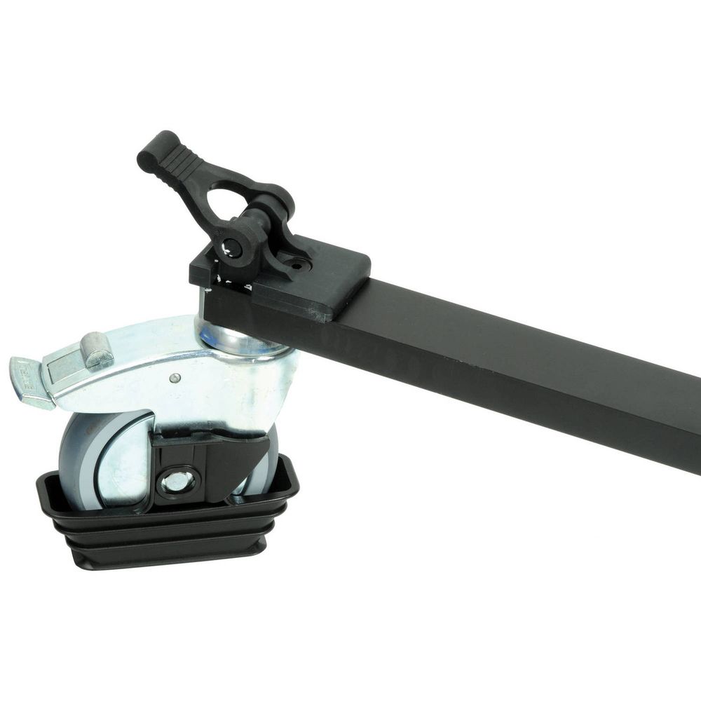 The Manfrotto 114MV Cine/Video Dolly is designed for use with tripods with spiked feet. The 5" wheels with independent brakes, cable guards, and unique leg locking system make this dolly very stable. It's also foldable for transport. Doorway clearance needed for the fully assembled dolly is only 44.1".