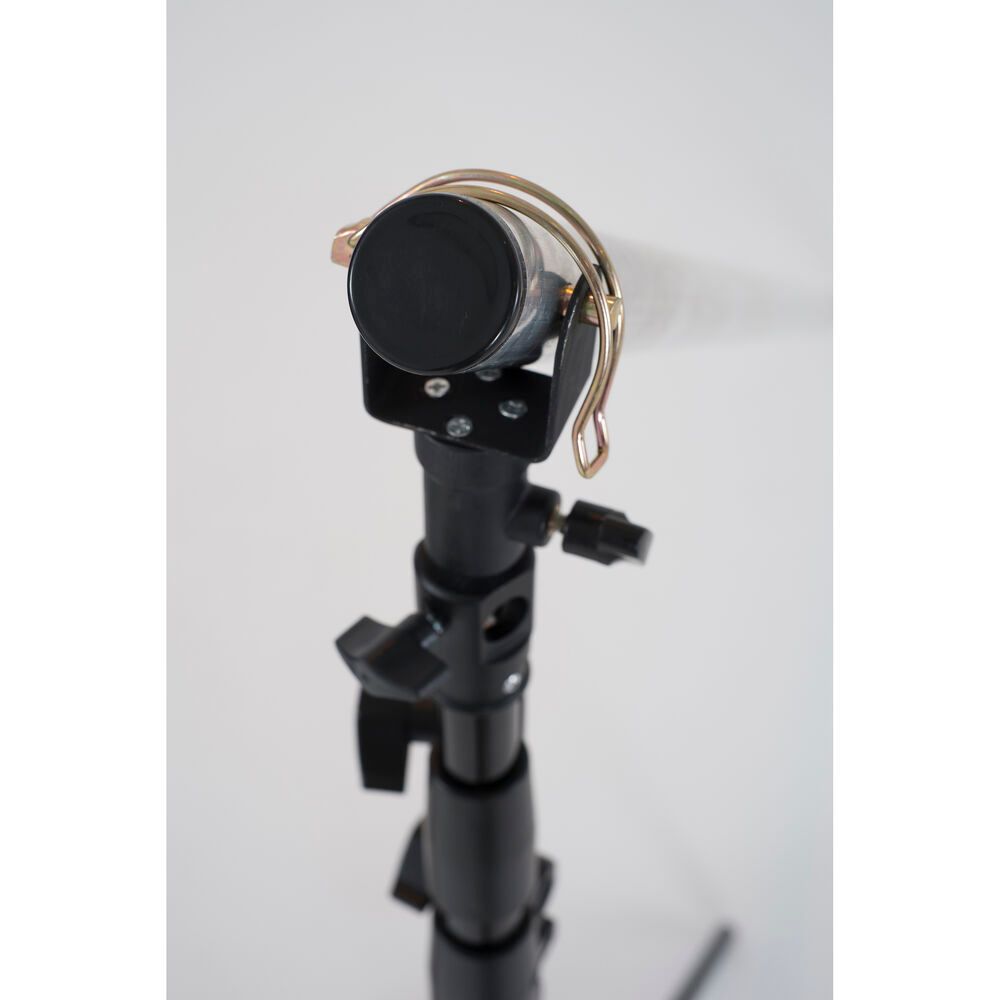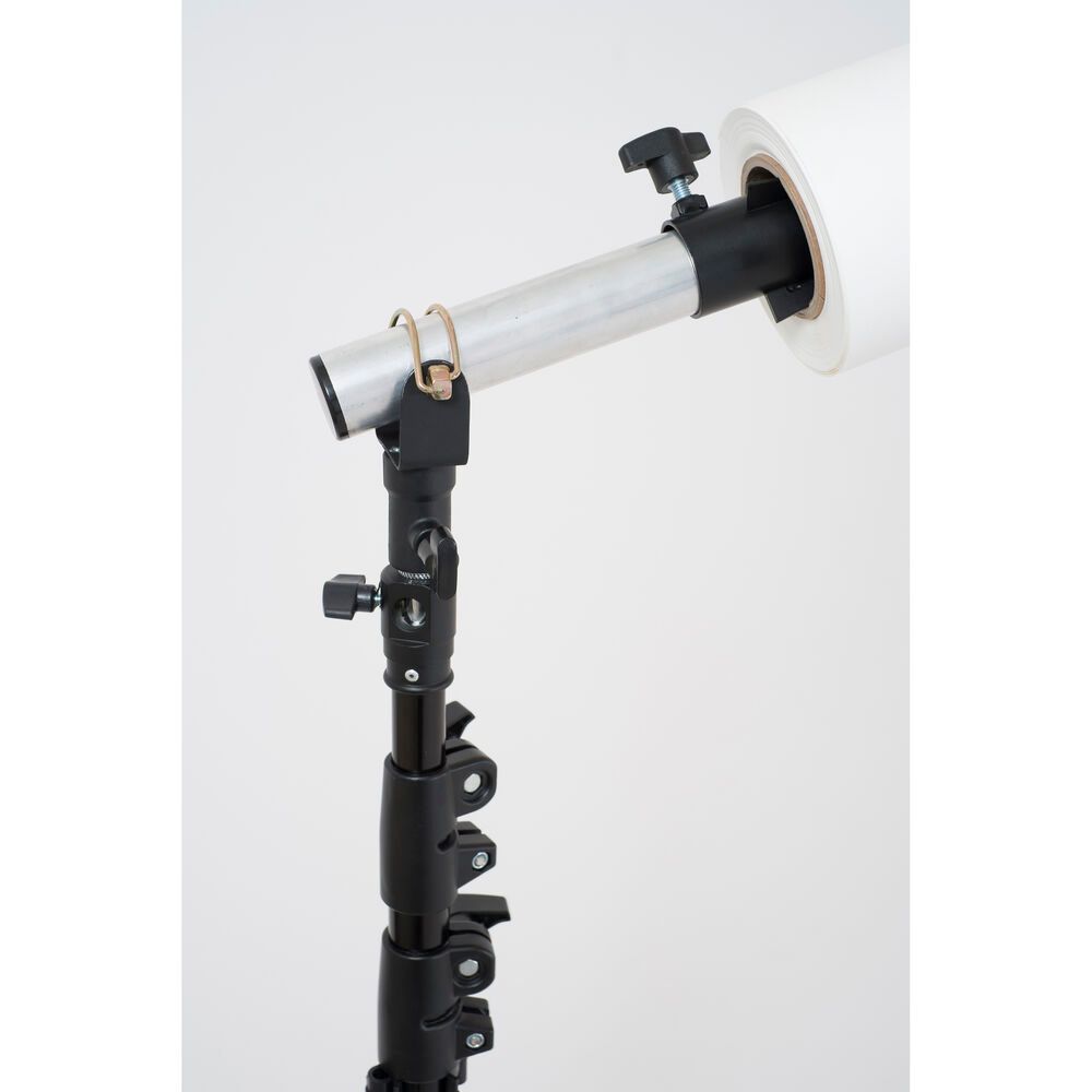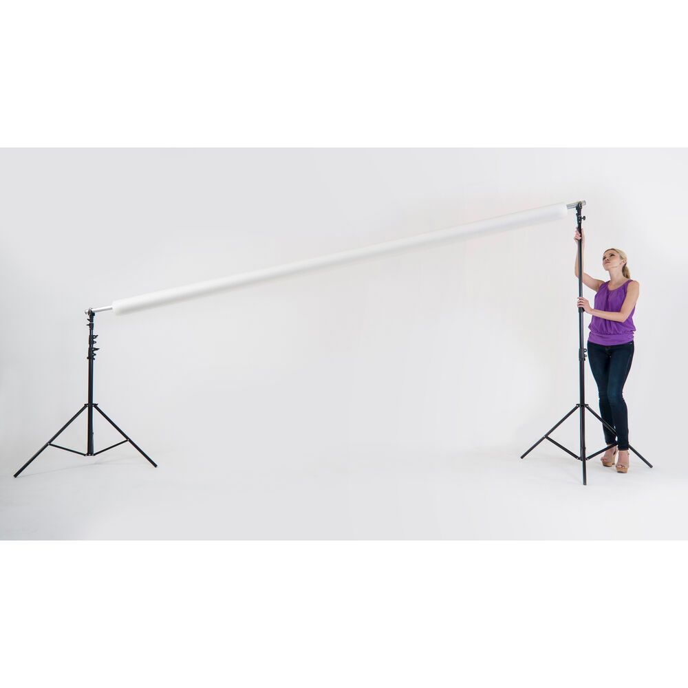 The Solo Heavy Duty Background Support System from Lastolite has a maximum width of 13' but can be expanded to 19.5' using an optional Lastolite Solo Background Support Extension. A unique facet of this system is the pivoting crossbar that makes mounting and raising a roll of seamless paper or other background a one-person operation. The system also includes two sturdy air-cushioned background stands and a carry case.