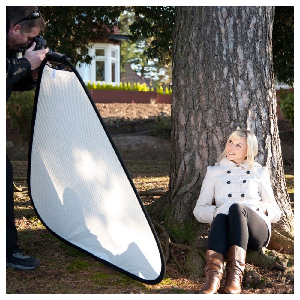 The TriGrip Deflector is the world's first dual purpose reflector panel which can be used as a diffuser (2.3 stops) and a bounce reflector. The unique fabric developed for this product allows light to pass through one side of the bounce and bounce off the other side, making it truly versatile whatever the lighting conditions. The deflector is available in two versions, one with a soft silver reflective surface and the other with a soft gold surface.