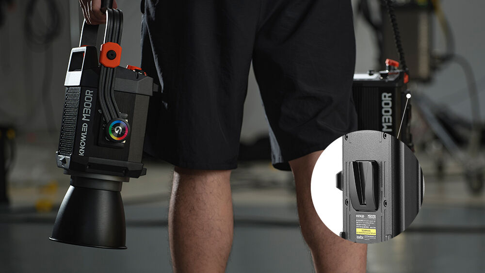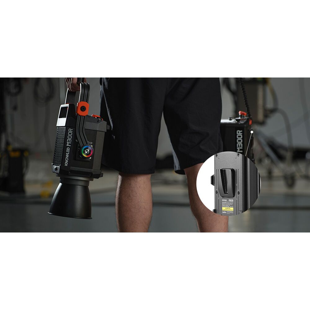 The light runs on AC power, but it will also run on a separately available 14.8V V-mount battery. Here, you get the inclusion of a connection cable and AC power cord. Finally, efficient fan cooling provides reliable heat dissipation while keeping the M300R is quiet enough during operation to suit sound-sensitive environments. You can even turn it off for complete silence or choose from auto, medium, and high fan modes.