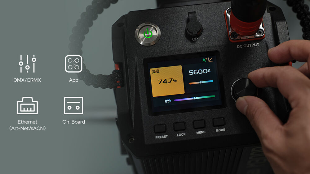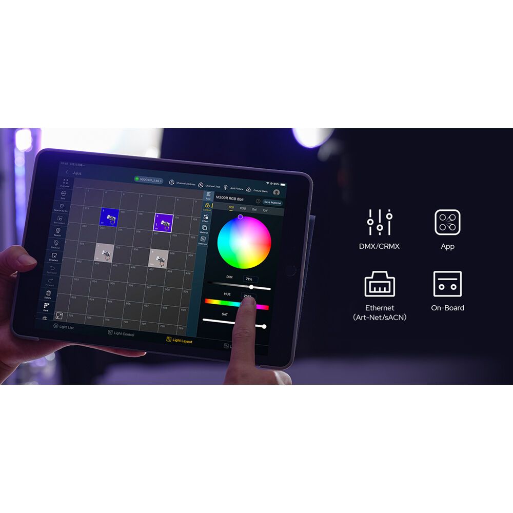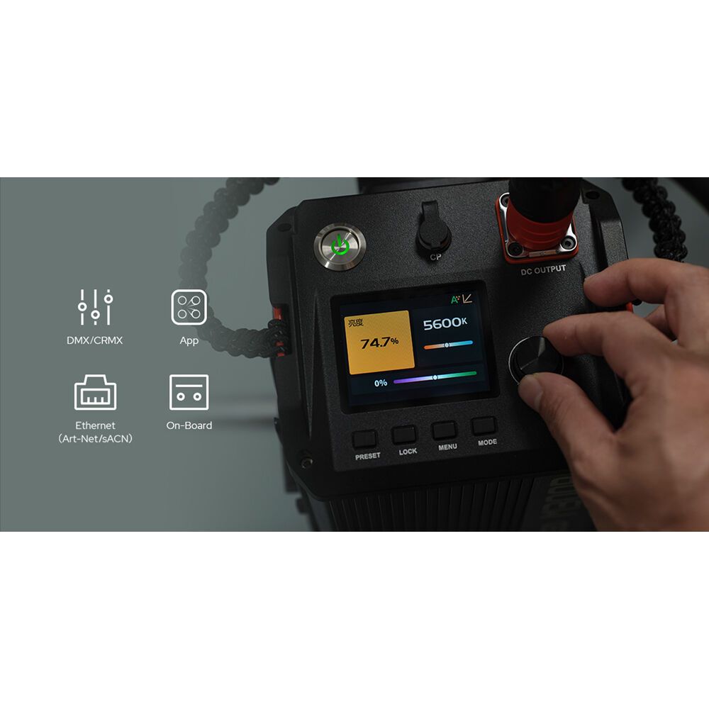 A variety of control methods allow you to adjust and control your light effortlessly and simplify your workflow. Control the fixture onboard with the included controller, via DMX/RDM, or wirelessly through LumenRadio CRMX or Ethernet, which supports the advanced Art-Net and sACN protocols. Bluetooth connectivity from a 196.8' distance is possible as well with the Godox KNOWLED and Godox Light apps.