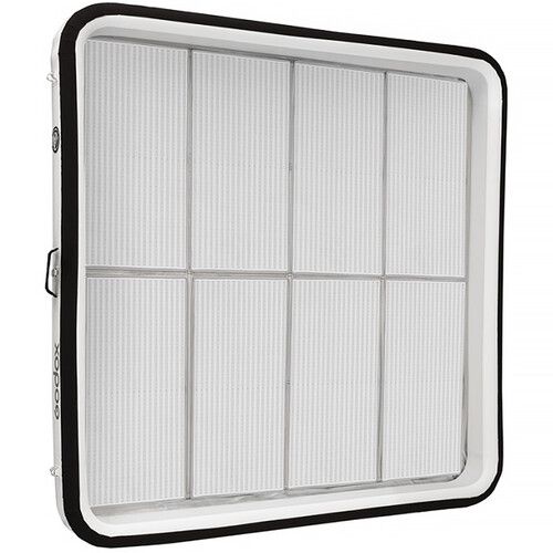 Distinctive, foldable, quick to assemble, and bigger, the 8 x 8' KNOWLED AM1600R RGB Inflatable LED Light Mat from Godox offers a versatile and advanced full-color lighting solution for large-scale film and television studios. This AM1600R version has an expanded 8 x 8' body that exceeds the size of its 4 x 8' model, and although it's heavier, it comes with a soft film accessory and two diffusers. It is made to suit even larger production sets by providing smooth and diffused illumination. At the heart of the AM1600R is a durable inflatable butterfly frame that does not require any truss support for overhead use. This IP54-rated light allows for 8-PSI high-pressure quick inflation and can be suspended for up to 15 days without reinflation. But that's only the beginning of the features of this KNOWLED series professional fixture. The AM1600R has multiple lighting modes and allows CCT selection from a wide 1800 to 10,000K, as well as +/- green/magenta color correction. Not only the soft film and diffusers, the light is packed with various other modifiers such as a pancake lantern, a grid, and a skirt to meet the different needs of lighting designers. Godox includes the air pump and other essential accessories in a robust flight case.