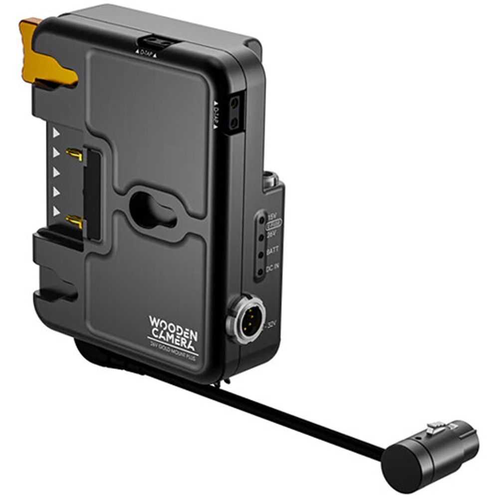 The versatile Gold Mount Plus D-Box for Sony VENICE/VENICE 2 from Wooden Camera provides hot-swap functionality and power distribution for your VENICE camera and select accessories. This box features an 8-pin DC input, a 4-pin XLR output cable, a 5-pin EXT port for an optional expander, and two regulated 15V D-Tap ports.