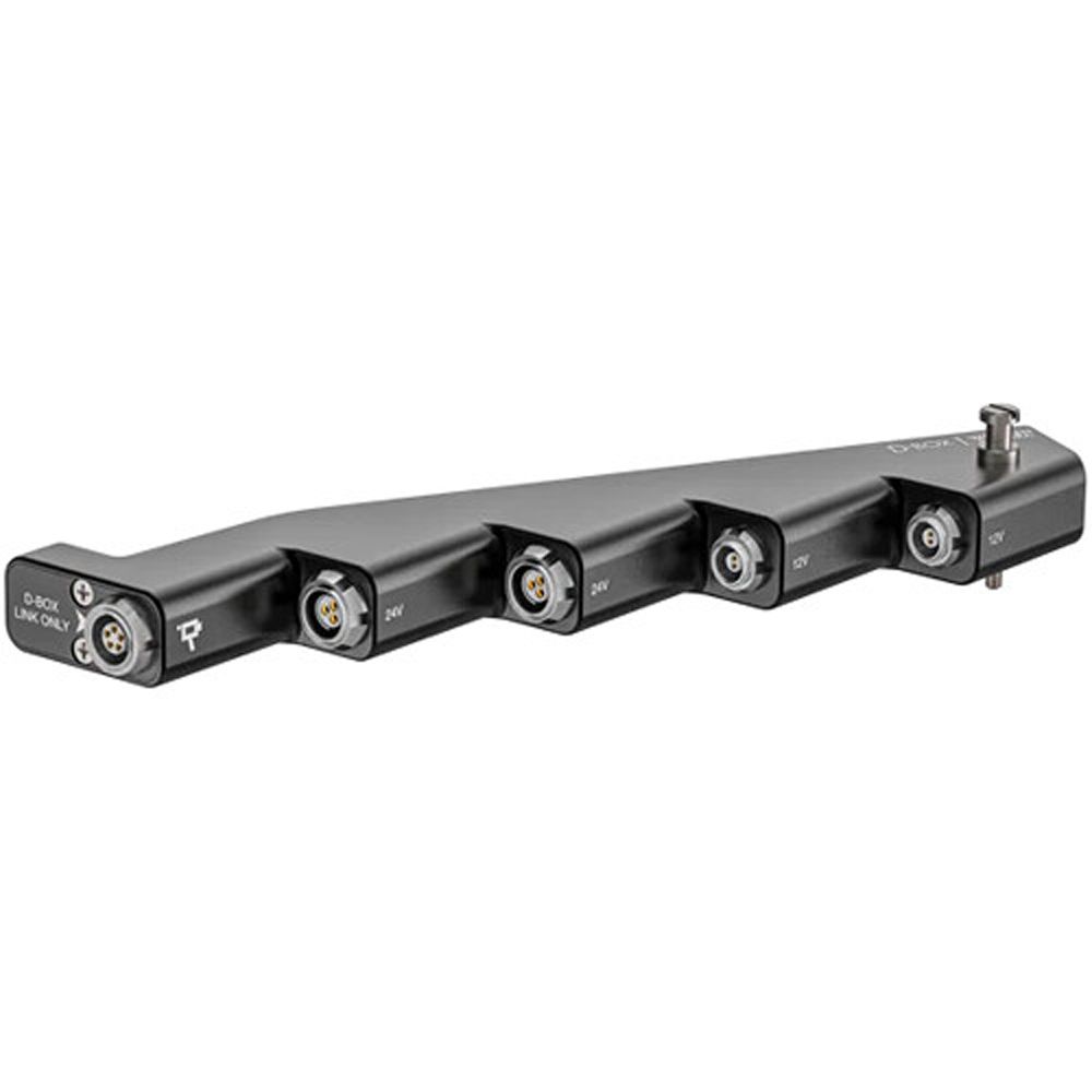 The Power Strip for Sony VENICE D-Box from Wooden Camera works with the separately available Wooden Camera D-Box for the VENICE camera. This power strip provides two regulated 24V 3-pin Fischer connectors with run/stop capability and two unregulated 12V 2-pin LEMO-type connectors.