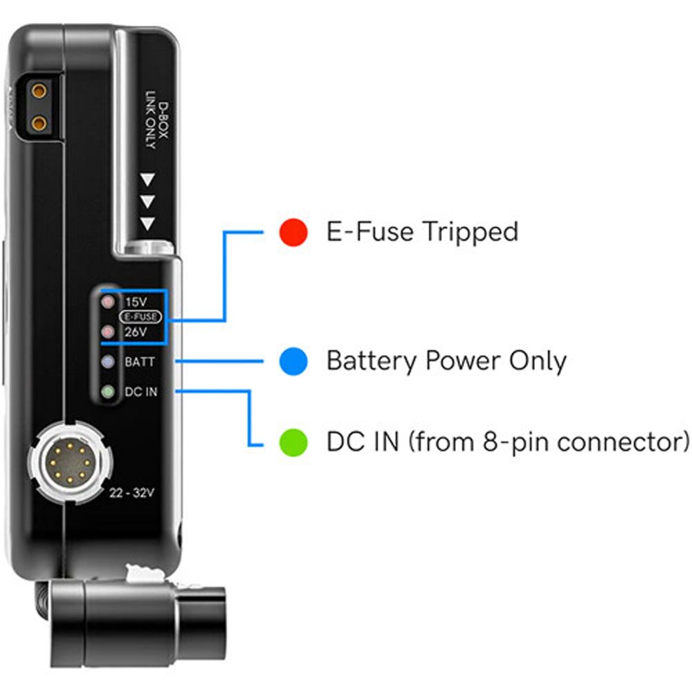 - The D-Box's DC input port enables you to connect a power supply, maintaining power to both the camera and its accessories during a battery swap.