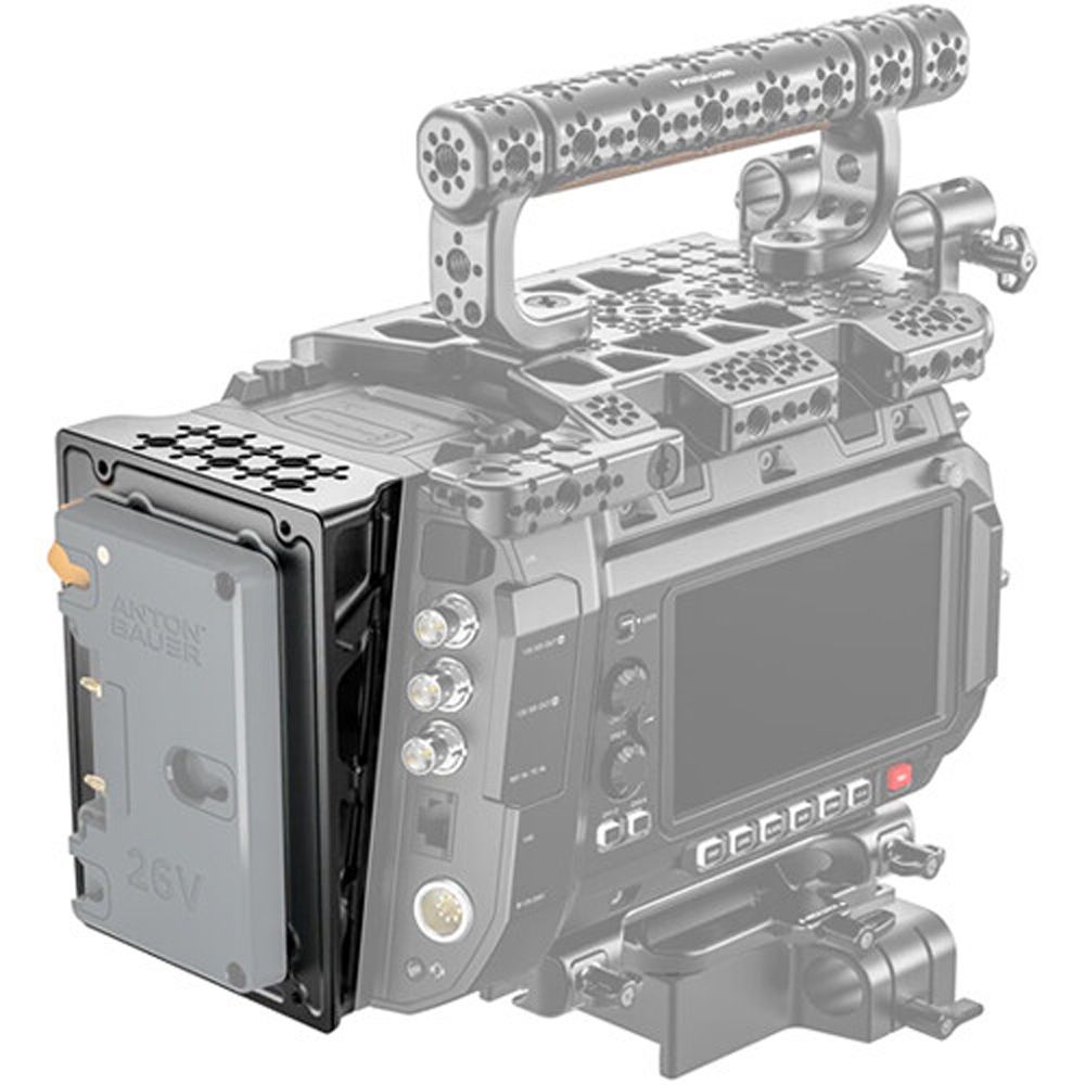 Add optional battery plates and mounts to the back of your URSA Cine 12Kor 17K camera using this Wedge Plate from Wooden Camera. This wedge plate adapts the angled back of the URSA Cine to a flush surface, making it easier to mount a variety of an optional Wooden Camera battery plate, D-Box, or back plate onto the camera. The plate also features multiple anti-twist threads to mount additional accessories onto the back of the camera.