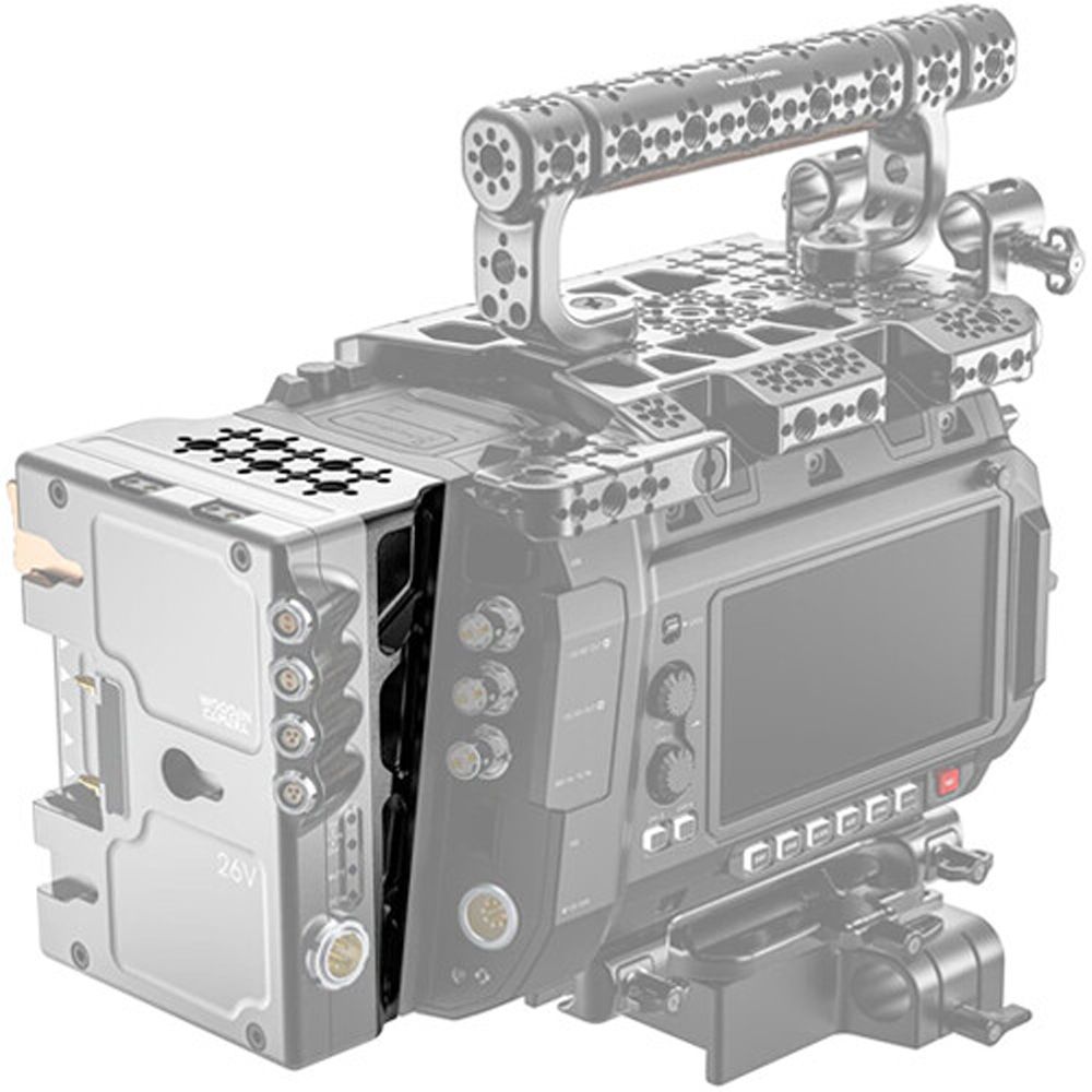 Add optional battery plates and mounts to the back of your URSA Cine 12Kor 17K camera using this Wedge Plate from Wooden Camera. This wedge plate adapts the angled back of the URSA Cine to a flush surface, making it easier to mount a variety of an optional Wooden Camera battery plate, D-Box, or back plate onto the camera. The plate also features multiple anti-twist threads to mount additional accessories onto the back of the camera.