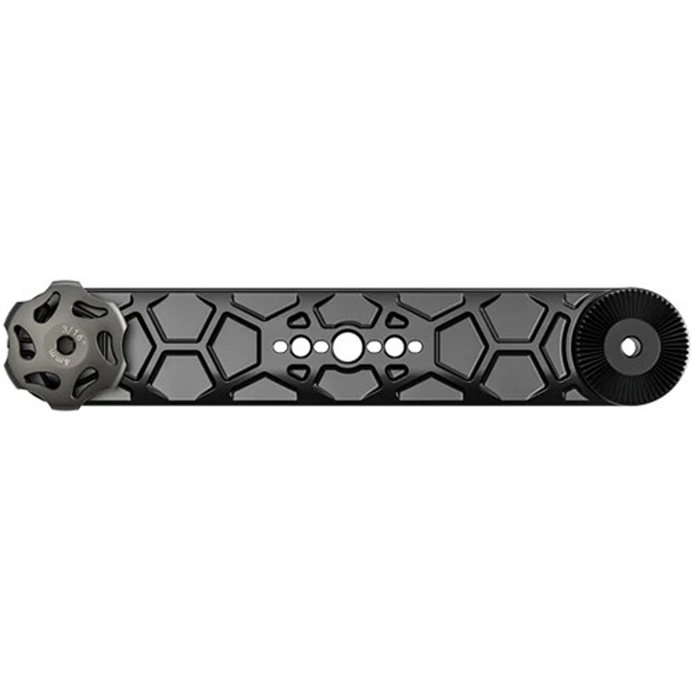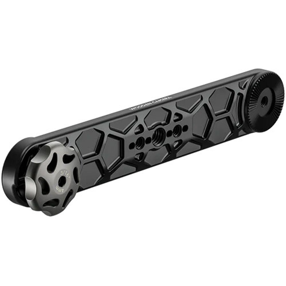This 6" Extension for Elite Handheld Accessories from Wooden Camera is an essential component that works perfectly with Elite accessories. Constructed from 7075 aluminum, the unit features a pentagonal design and incorporates 1/4"-20 and 3/8"-16 mounting points for broad compatibility with different accessories such as monitors and audio recording devices. Two integrated 32mm rosettes with M6 screw compatibility facilitate the mounting of rosette-compatible accessories, while a stainless steel knob coated in DLC (diamond-like carbon) employs finger grooves for quick and easy tightening.