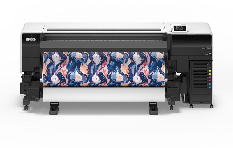 The SureColor F9560 is designed for custom fabric and garments, premium soft and hard signage, décor and merchandise production. It is a high-performance roll-to-roll 64" dye sublimation printer that offers high image quality with fast performance and economic operation. It can be ordered in either a 4c or 6c configuration and uses a dual 1.6 L ink pouch style supply with hot-swap. Prints are made on paper, which is transferred (sublimated) via a heat press onto materials with a polyester base or polyester pre-treatment.