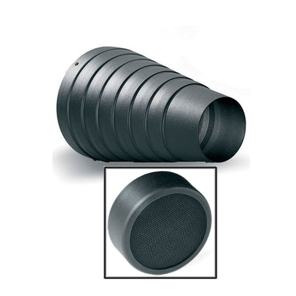 The Elinchrom 26061 Snoot with 10° Grid attaches to the front of any Elinchrom flash head. It consists of the #26425 Snoot, which narrows the spread of light from the flash head, and the #26426 10° grid, which narrows the spread even more. Use this for extreme light control on small areas of your subject to bring up detail and decrease the highlight-to-shadow ratio.