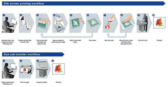 Dye sublimation offers significant benefits over traditional screen printing. Digital image processing enables easier image creation and editing, more output control, and more flexible production with superior consistency. It is considerably quicker and less expensive for short to medium production runs, requires less labour, involves less materials, and less wastage. Printing is mess free and production can occur in a relatively small amount of space. Job turnaround is faster and repeat runs can be undertaken at the push of a button. While the process generally only suits fabrics with a high polyester content, it can also be used with a range of other materials that will accept a polyester spray and withstand the heat + pressure of the transfer process. A wide range of products can be produced including fabric banners and metal signage, timber furniture finishes and sporting goods, phone covers and tablet cases, footwear ('thongs') and sportswear, wall decorations and home décor.