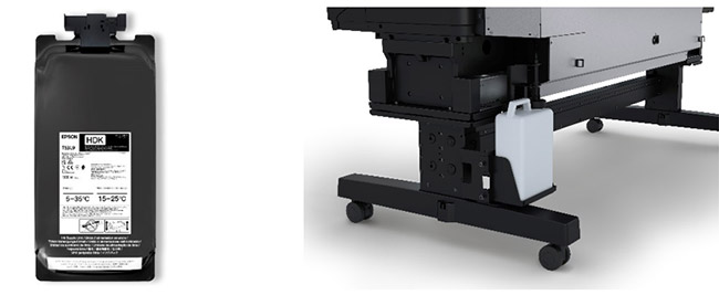 The Epson DS Fabric series has been designed for consistent, reliable, and cost-effective operation. The SC-F6460 features a new ink system that uses mess-free 1.6L ink pouches. The pouches are compact, easy to transport, easy to store, and produce minimal waste. They are easy to agitate and quick to load. The printer has a bulk waste system with a 2L reusable tank that is easy to empty. It supports user self-maintenance with a simple head cleaning kit and a convenient hatch to access the capping system. A large control panel operates via a touch interface and has in-built help. Additional video guides can be accessed via a QR-code.