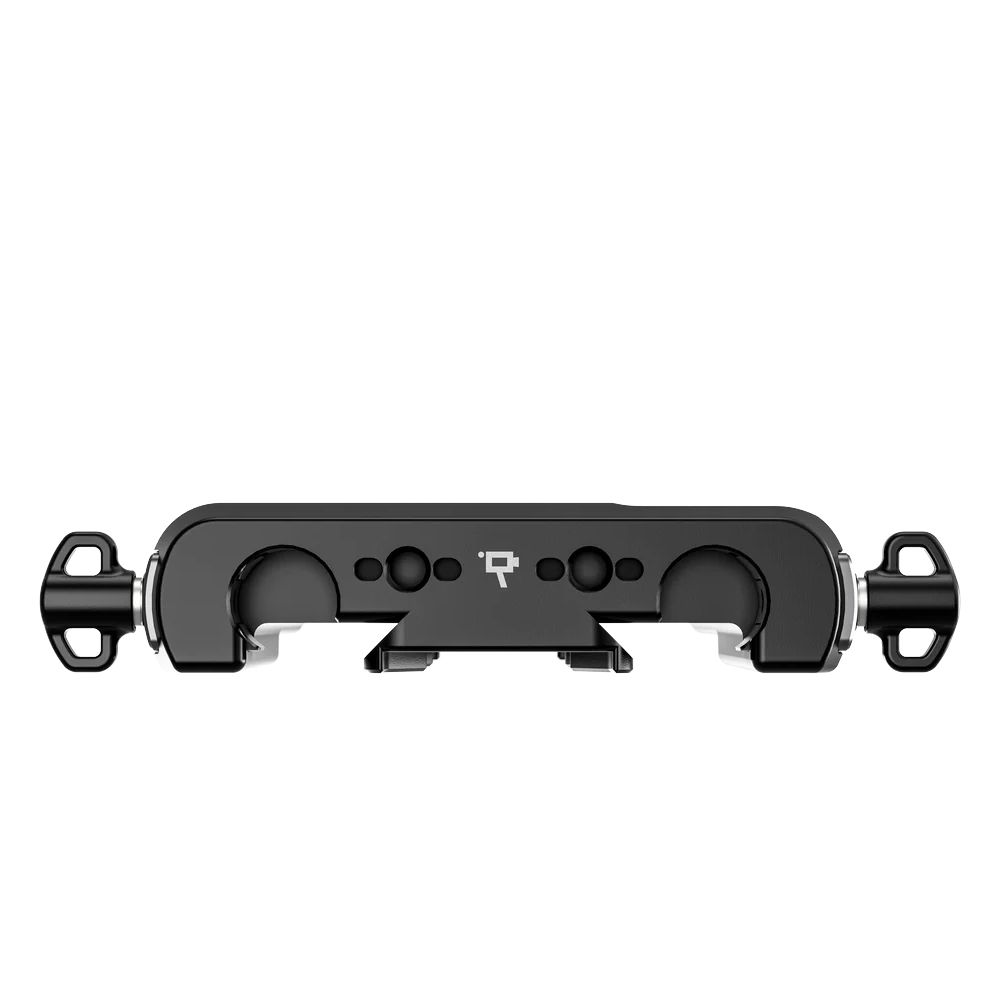Integrate this Arca-Type Riser Plate from Wooden Camera into your FUJIFILM GFX ETERNA 55 rig configuration to facilitate quick transitions from handheld to stabilized shooting. The plate secures to your camera via two 3/8"-16 threads, designed to sit at the optical center of the camera body for proper alignment with lens accessories. Dual 15mm LWS rod clamps allow you to secure the camera to rod-based mounting systems. A 1/4"-20 thread at the back allows you to add the D-Box battery plate to the plate.