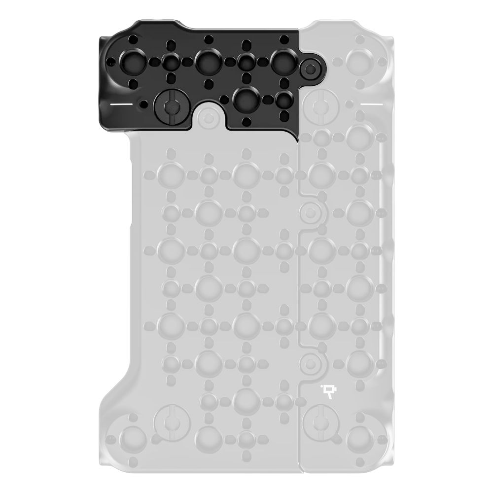 Use this Front Top Plate Extension from Wooden Camera to add several anti-twist 1/4"-20 and 3/8"-16 accessory mounts to your FUJIFILM GFX ETERNA 55 camera. This plate is compatible with Wooden Camera's power strip and rear and back plates for the ETERNA 55. It mounts on your camera using the included 3/8"-16 screw and onto the separate strip or plates via the included M3 hex screw.