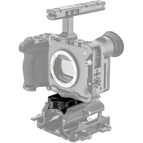 Add the 20mm Arca Riser from Wooden Camera to your Sony FX2 camera for compatibility with Arca-type baseplates and accessories. The riser plate mounts onto the included 8mm Bolt-On Arca plate that provides proper 15mm alignment and secure mounting onto the Cage L-Bracket for the FX2, and it can be used with the riser plate or on its own. The camera mounts onto the Arca-type plate using two screws, and the Bolt-On piece mounts onto the plate using four M4 screws.