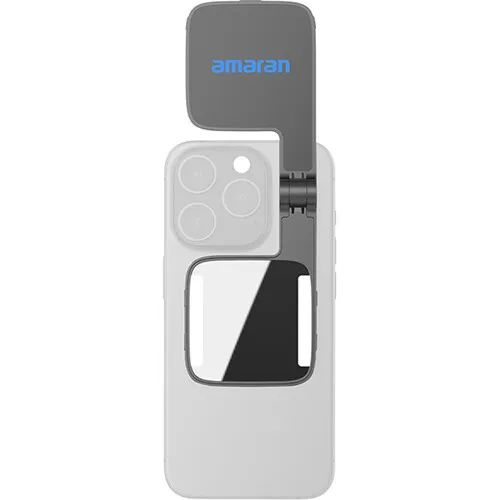 The compact and convenient GO in charcoal from amaran is a mini folding LED light for use with your smartphone in a MagSafe case. It provides adjustable colour temperature and brightness to help create your desired look and is easily controlled using the free app for iOS or Android. It has a portable form factor that fits in your pocket. The Go is an inexpensive way to improve the quality of your content. It offers fast and reliable attachment to MagSafe-enabled phones, and its versatile flip design provides seamlessly switching between front and rear camera setups. It has a built-in mirror and makeup light for quick touch-ups and a compact folding design. The color scheme matches popular phone styles.