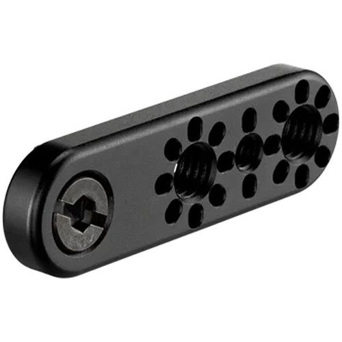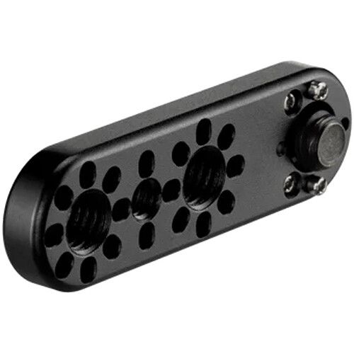 The threads are 2" apart, so you can add just enough space from your rig. It works with any accessories with 3/8"-16 or 1/4"-20 mounting points with locating pins, such as the Wooden Camera 1/4"-20 Cold Shoe, Bolt-On Accessory Rail Clamp, Universal Hinge, and Universal Clamp. It is constructed with durable, lightweight black anodized aluminum.