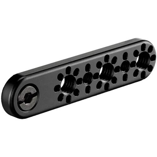The threads are 3" apart, so you can add just enough space from your rig. It works with any accessories with 3/8"-16 or 1/4"-20 mounting points with locating pins, such as the Wooden Camera 1/4"-20 Cold Shoe, Bolt-On Accessory Rail Clamp, Universal Hinge, or Universal Clamp. It is constructed with durable, lightweight black anodized aluminum.