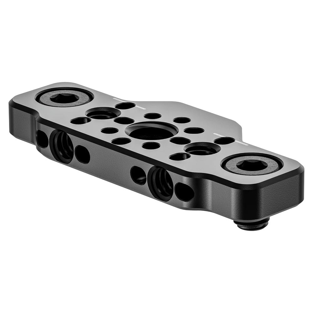 Add accessories such as a top handle or bolt-on rods to the top of your FX2 camera with this Top Plate from Wooden Camera. The plate mounts directly onto the top of the camera using two included screws, allowing it to work independently or alongside the Wooden Camera FX2 cage. The plate features 1/4"-20 and 3/8"-16 threads on top and 1/4"-20 threads on the front side for additional bolt-on rods for lens motors and more.