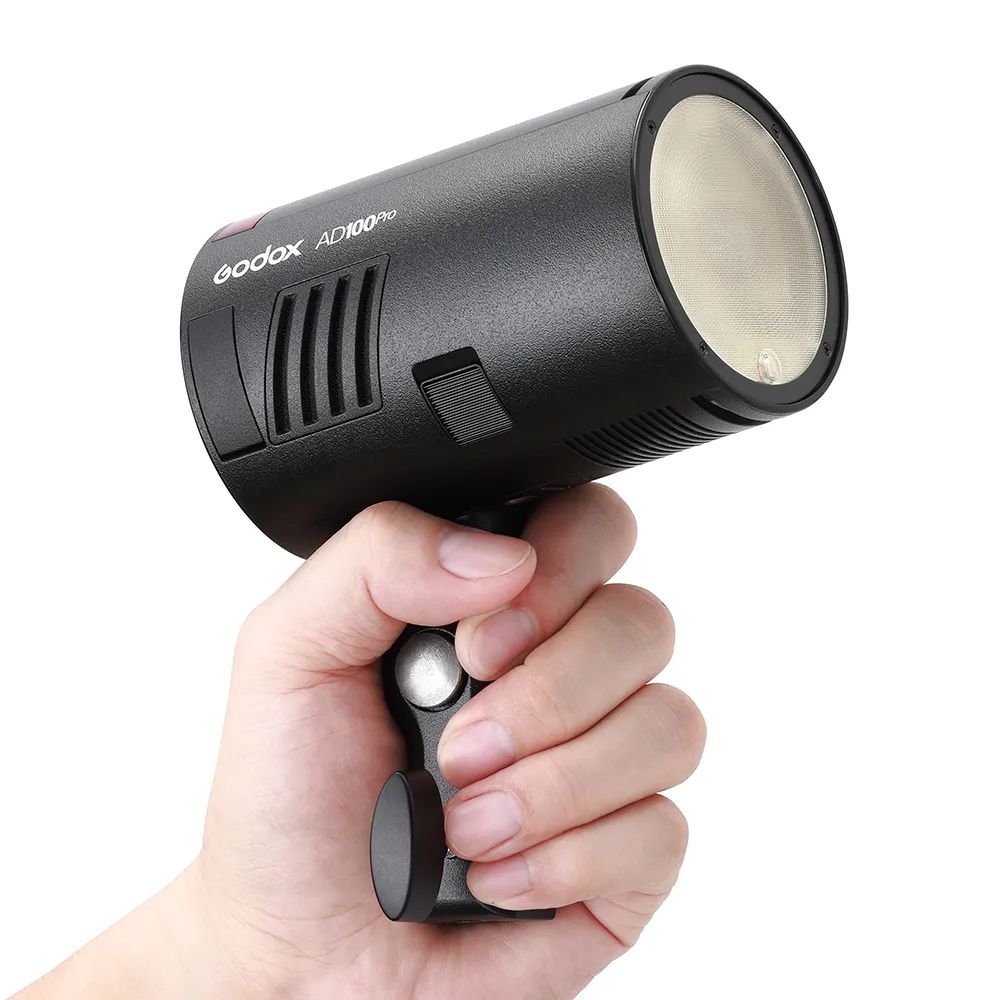 AD100Pro Flash is a compact Speedlight with a removable lithium-ion battery that will give you up to 360 full-power flashes and thousands of lower power flashes.