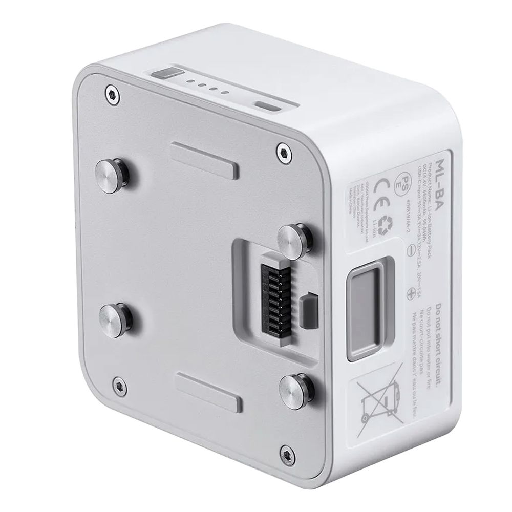 The ML-BA is a DC 14.4V, 6600mAh, 95.04Wh rechargeable lithium battery pack, designed to power your ML80Bi for approximately 60 minutes or your ML150Bi for approximately 40 minutes (at full power) when you are away from mains power. They are also great for placing your light in spaces where running a power cable to it is either impractical or impossible.