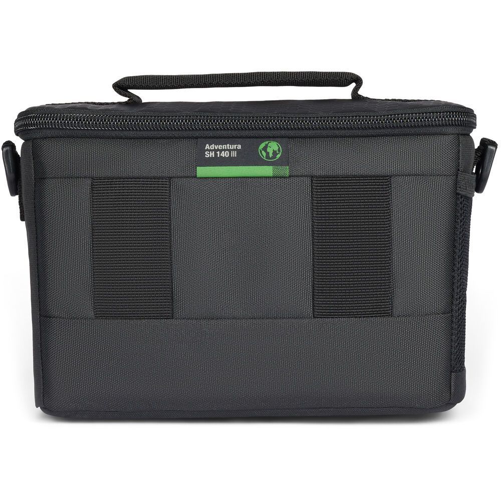 The black Adventura SH 140 III Shoulder Bag from Lowepro is useful for all your photo adventures. It features a lightweight yet rugged design with multiple handy features, including multiple accessory pockets, an adjustable and removable shoulder strap, and PVC-free molded bumpers to prevent scratches. The exterior fabric is coated with PU lamination, providing both waterproofing and protection from the elements. The bag holds a crop-sensor mirrorless with lens, including a FUJIFILM XT200, a Canon M50 MII, an EOS R10 or a Nikon Z50, plus four additional lenses. It is ideal for both novice and professional photographers.