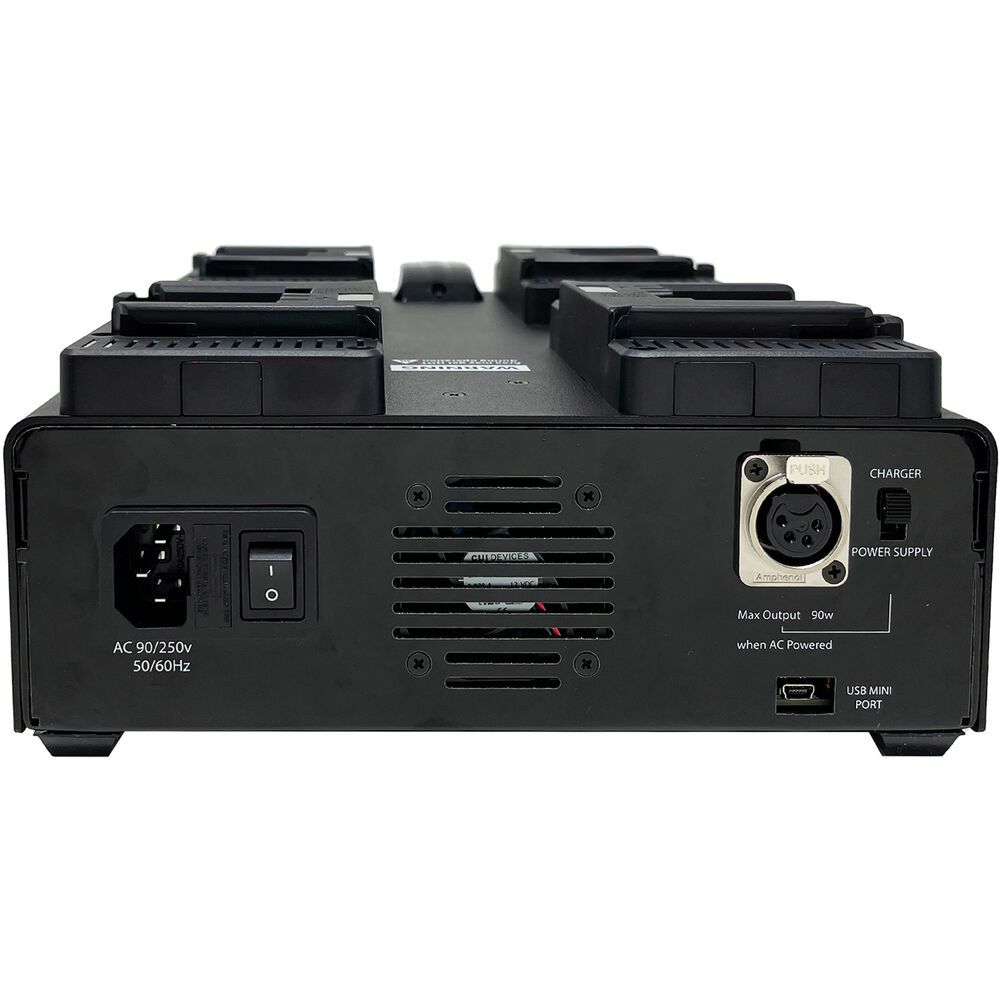 - A 4-pin XLR port outputs up to 90W for powering compatible devices.