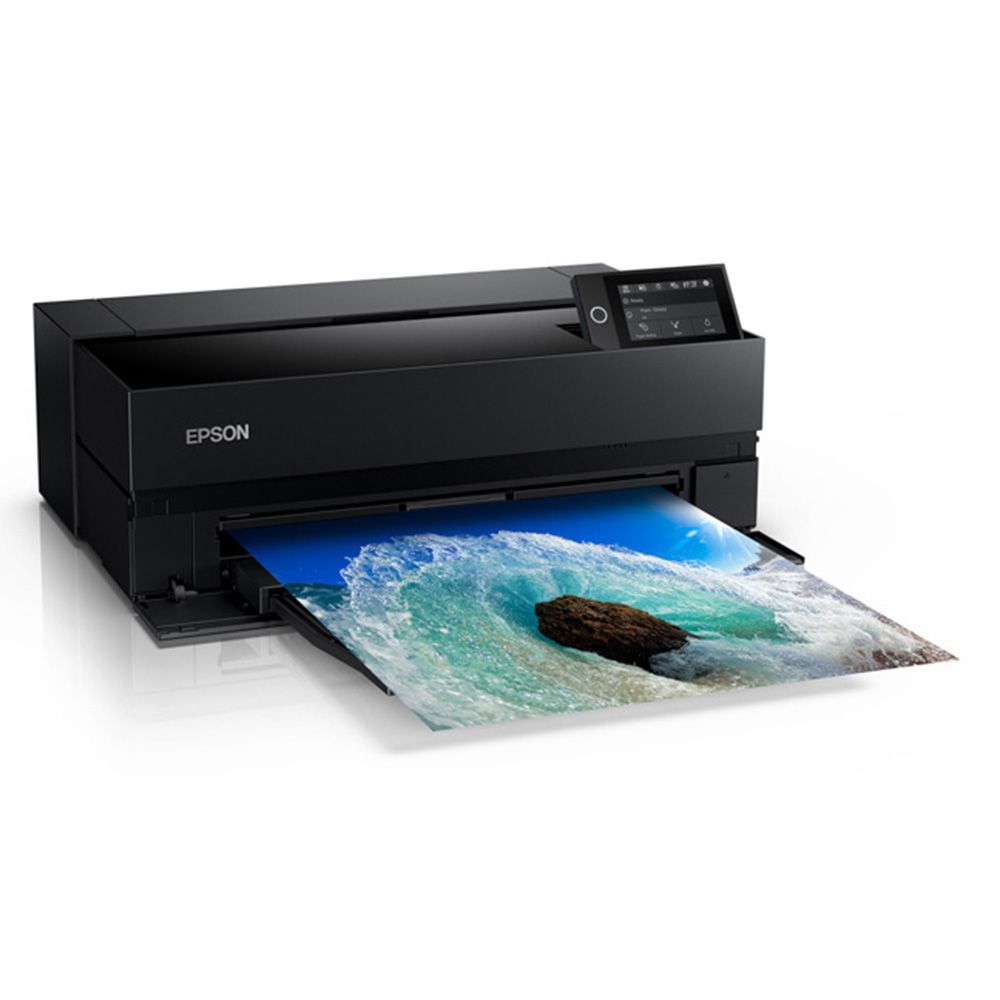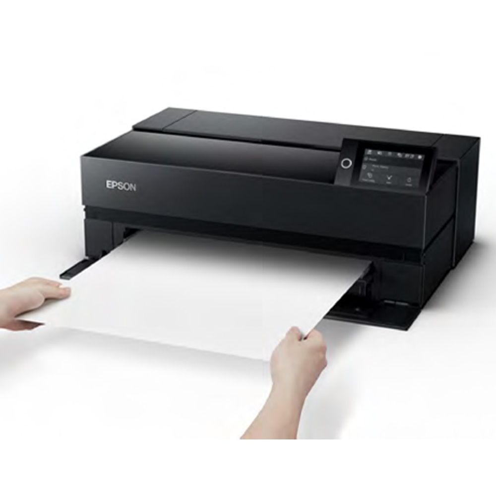 Epson raises the bar again with its cutting-edge design of the new high quality A2+ photo printer, the Epson SureColor SC-P906™, which delivers professional features including high-capacity cartridges with an expanded colour range, new printing modes, networking and wireless connectivity, large touchscreen display, plus advanced media handling. UltraChrome® PRO10 pigment ink, combined with Epson's innovative MicroPiezo® print head, enables the SC-P906 to produce gallery-quality black & white output, plus improved vivid colour prints with breathtaking blues and violets thanks to the new Violet ink that is now on board. The Epson SureColor P906 also has dedicated lines for all colours so now you do not have to wait to switch between the Photo / Matte Black ink carts saving you time and keeps you printing more efficiently. The Epson SureColor P906 is setting new benchmarks in A2+ professional photographic printing, delivering the highest D-max to date and unsurpassed black and white photography along with outstanding colour exhibition quality prints. The SC-P906 is 30% smaller than its predecessor and is ideal for amateur and semi-professional photographers and for any business that has a regular requirement for high-quality colour presentations.