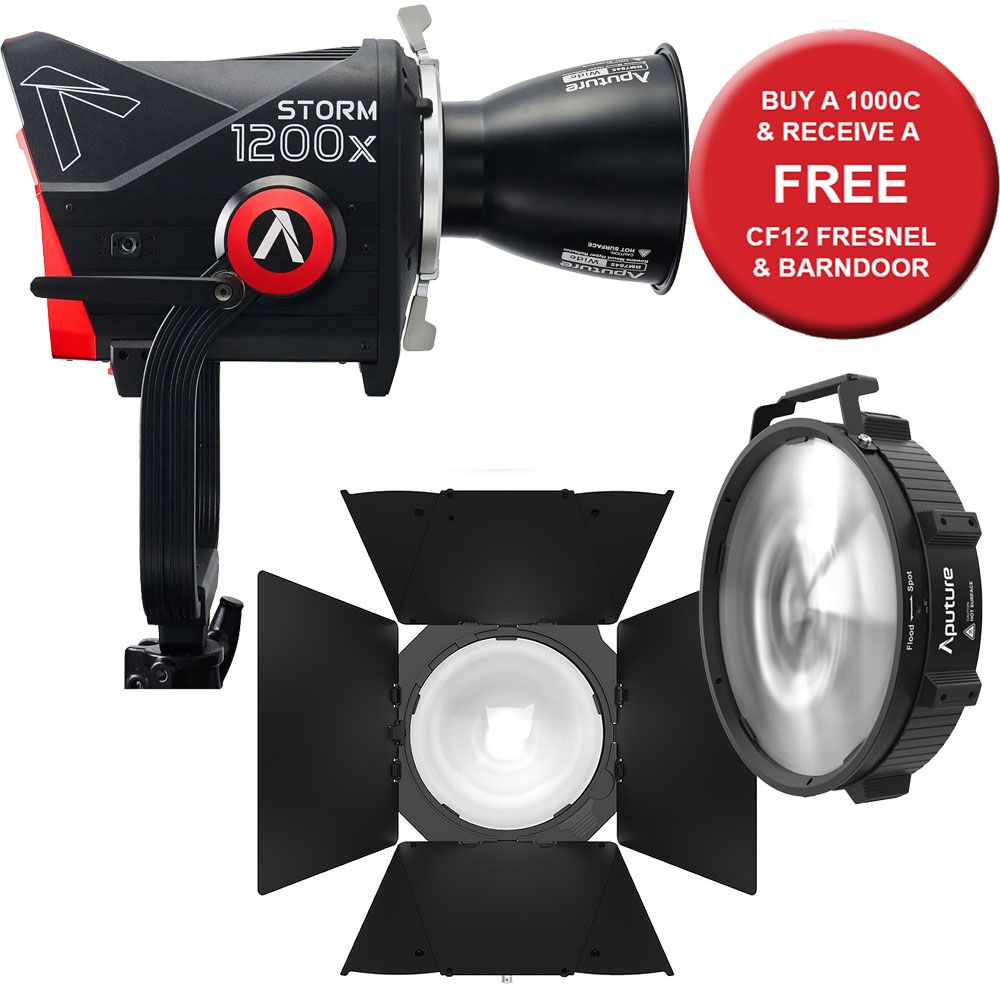 Aputure Storm 1200X LED Light Inc CF12 Fresnel & Barndoors