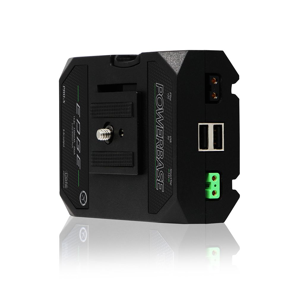 The follow-up to the highly successful Powerbase70, the Powerbase Edge is a feature-rich “small-form” Cine and DSLR pack, in a v-mount form. The 14.8v Lithium Ion pack includes one 8v port to power various cameras, two USB output, and two power tap outputs, one of which being a SmartTap.