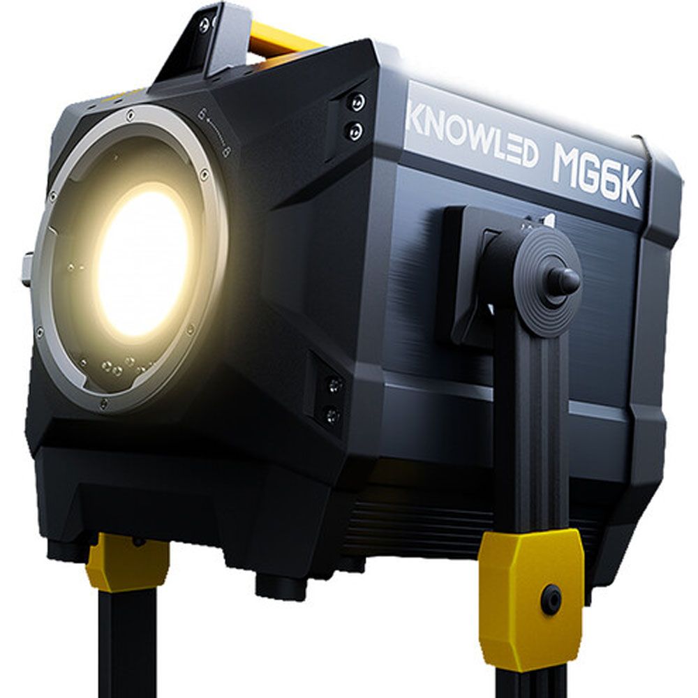 Surpassing the brightness of traditional 6kW HMI fixtures, the ultra-powerful KNOWLED MG6K Bi-Color LED Monolight from Godox is a 4300W lighting solution for large scale TV, film, and broadcast productions. Weighing only 61 pounds with its included yoke attached, this fixture produces an impressive 1,025,000 lux at 3.3' at 5600K with its included MGR30 reflector. Powered with its included controller and AC cable, the MG6K effectively illuminates a variety of environments, producing 2800-10,000K bi-color temperatures. Equipped with a G-mount, the MG6K is compatible with Godox's expansive accessory ecosystem to shape and sculpt light. For additional control, the included U-type bracket allows for precise light placement.